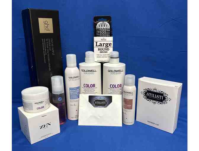 This package includes: GHD Curve Wand; BajaZen Cleanse Soaking Salt; Goldwell DS Color Treatment; Goldwell DS Color Brilliance Serum Spray; KareCo Large Thermal 3" Round Brush; Goldwell Dry Spray Wax; Goldwell Bodifying Brilliance Mousse; Goldwell DS Color Conditioner; Goldwell DS Color Shampoo; $215 Gift Card to Stilisti Salon