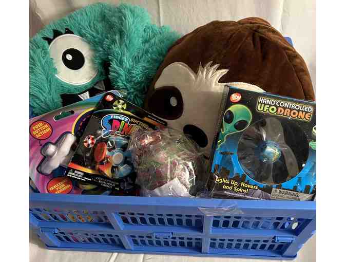 Collapsible 18.5 x 13.75 blue tote filled with: