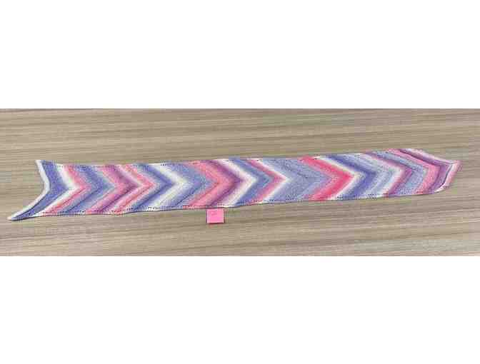 This handmade knit scarf measures 60" long and 7" wide. Created by Deepa Balasubramanian.