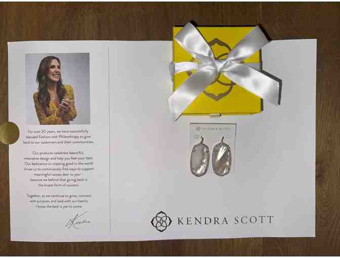 Enjoy a beautiful pair of Kendra Scott drop-down earrings with gold accents, with certificate of authenticity and a gift box.
