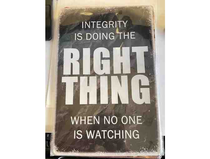 8x12 metal plate with motivational wisdom “Integrity is doing the right thing when no one is watching".
