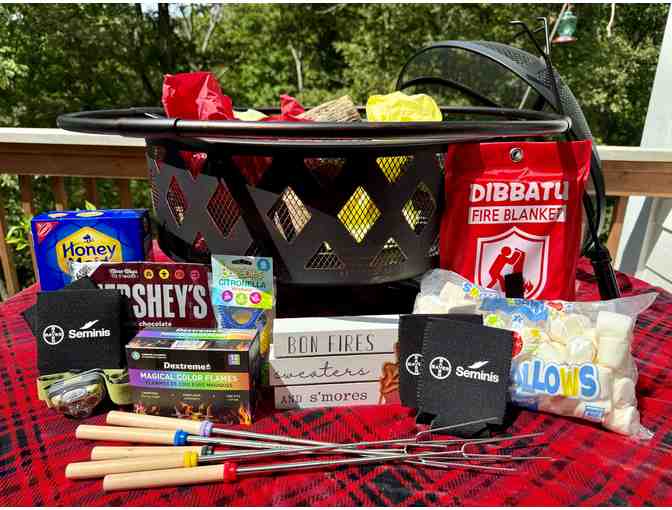 Gather 'round this cozy firepit, and watch the flames dance and change color! Stay refreshed with stylish Veg Seeds branded can koozies while indulging in classic s'mores. We have safety covered, too, with extendable roasting sticks, bug repellant bracelets, and a fire safety blanket. Get ready for memorable nights under the stars!