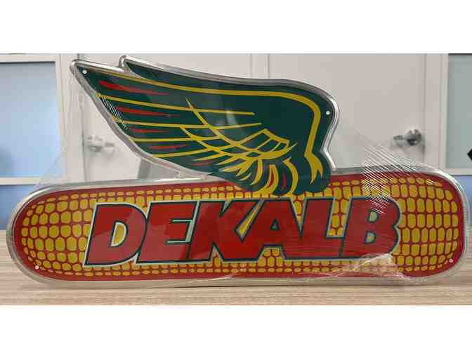 This sign features the Dekalb flying corn.