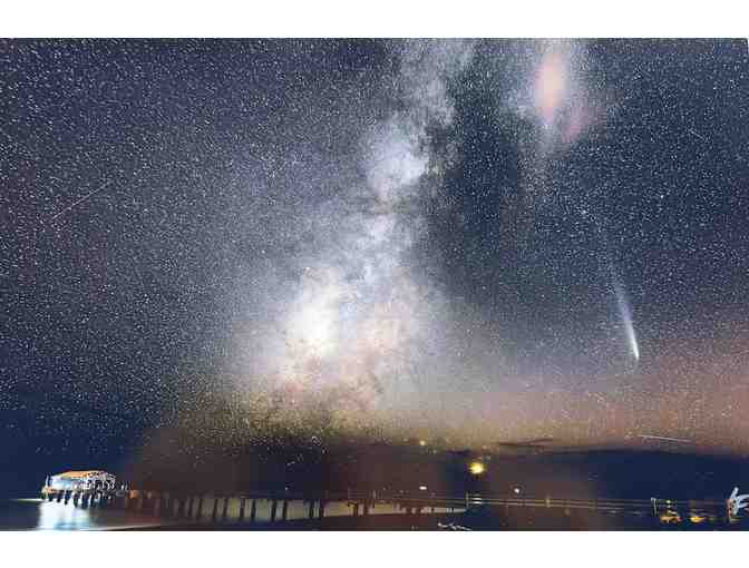 Beneath Kauai’s velvet night, Waimea Pier stretches quietly into the infinite. Stars shimmer like diamonds scattered across a boundless sky, their light mirrored upon the still waters. This image transcends mere scenery asit becomes a meeting place between heaven and earth, where eternal stillness and beauty linger. A rare and timeless work, this photograph invites the viwer to hold a piece of Kauai’s essence, captured under the brilliance of a starlit night.