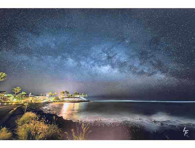 Beneath a clear Kauai night, the Poipu shoreline glows beneath a canopy of stars and a vibrant, deep-blue sky. Waves move against ancient rock, their rhythm illuminated by the quiet brilliance of starlight. More than a seascape, this photograph is a portrait of Kauai’s enduring beauty. It is an invitation to experience the magic of the night where land, sea, and sky meet in timeless harmony.
