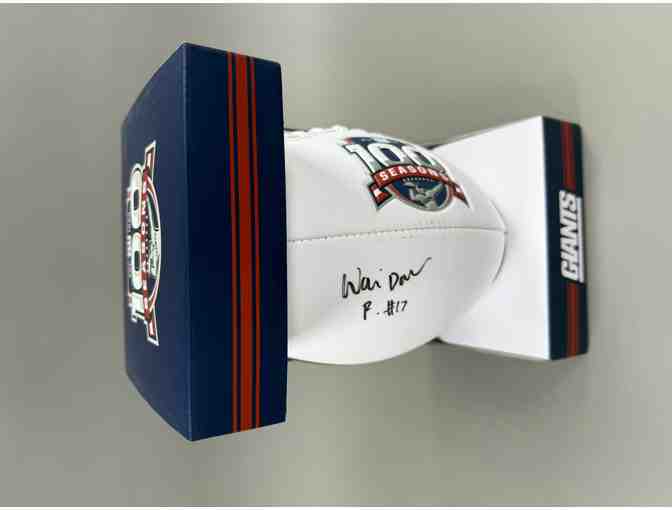 Own a piece of Giants history with this autographed football from wide receiver Wan'Dale Robinson (#17), who just completed a remarkable 2024 season with 93 receptions – the 5th highest single-season total in Giants franchise history. The dynamic slot receiver overcame two knee injuries early in his career to become one of the NFL's most reliable targets, leading the league with 34 third-down catches in 2024. Selected 43rd overall in the 2022 draft after setting Kentucky's single-season reception record, Robinson has quickly become a fan favorite and key component of the Giants' offense. This authenticated signature captures a rising star at just 24 years old, making it a valuable addition to any collection while supporting a great cause.
