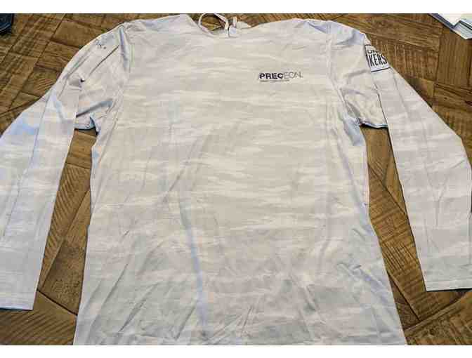 Men's Anetik hooded shirt with Preceon Smart Corn System printed on the front and Groundbreakers on one sleeve. Has one zippered pocket.