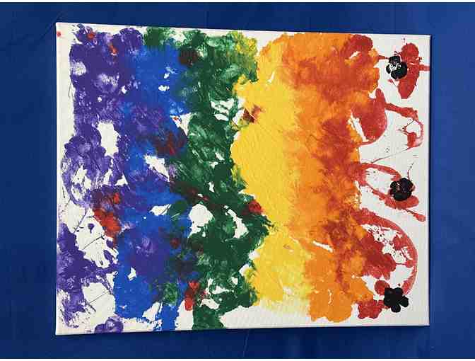 Bring home a touch of the magic at Merrimack River Feline Rescue Society with this one of a kind kitty painting! This piece is done in a beautiful set of rainbow colors so you can show off your pride year round! The piece also features three paw print signatures from Doodle, Scribble, and Pixel - our talented artists!