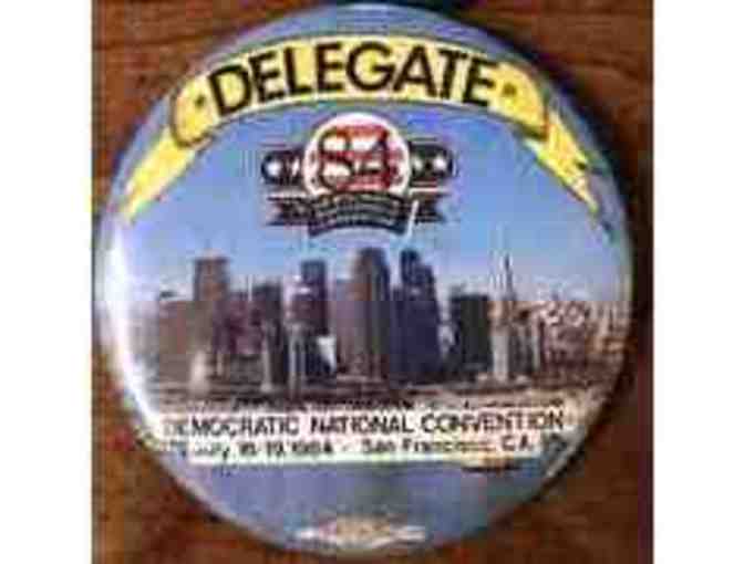 Delegate button from the 1984 convention when Geraldine Ferraro became the first woman to be nominated by a major political party as Vice President.