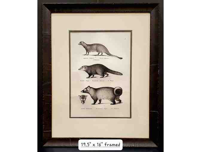Antique Framed Zoological Engraving β Mongoose & Raccoon