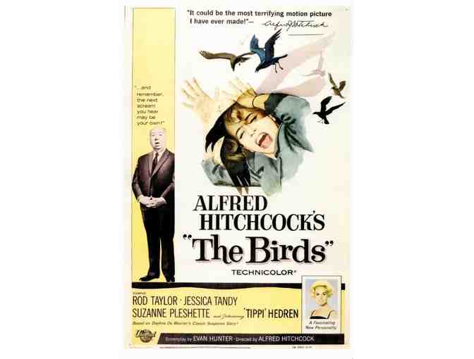 The Birds, the classic 1963 Alfred Hitchcock horror thriller starring Rod Taylor, Jessica Tandy, Suzanne Pleshette, Tippi Hedren, Veronica Cartwright and Richard Deacon.