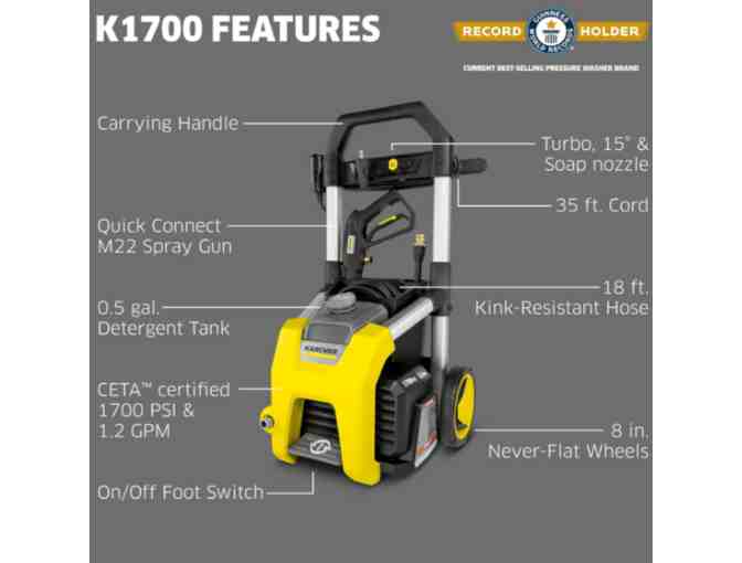 Kärcher Pressure Washer K1700, CETA Certified, 3 Spray Nozzles, Detergent Tank, for Cars, Driveways, Siding, Patios, 1.2 max. GPM
