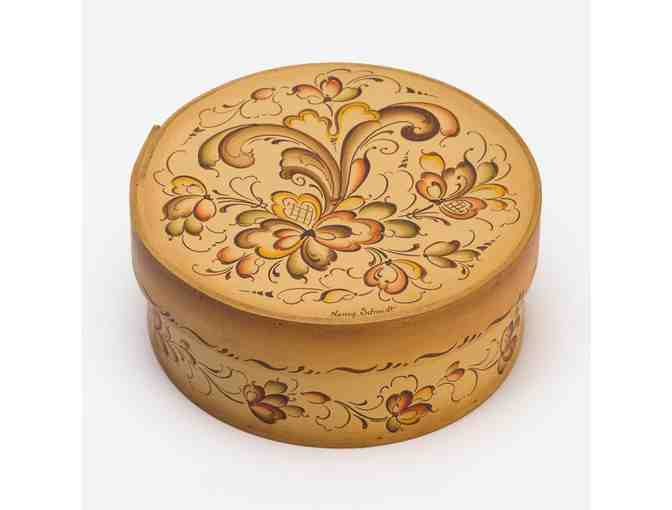 Rosemaled Round Wooden Box with a Lid by Nancy Schmidt