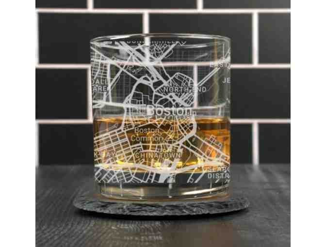 Raise a glass to Boston pride! This package includes two etched whiskey rocks glasses featuring a detailed map of Boston, paired with a premium bottle of Massachusetts-made whiskey. A perfect blend of local craftsmanship and hometown spirit—whether you’re toasting the Sox, the skyline, or just the end of a long day, it’s guaranteed to be wicked smooth.