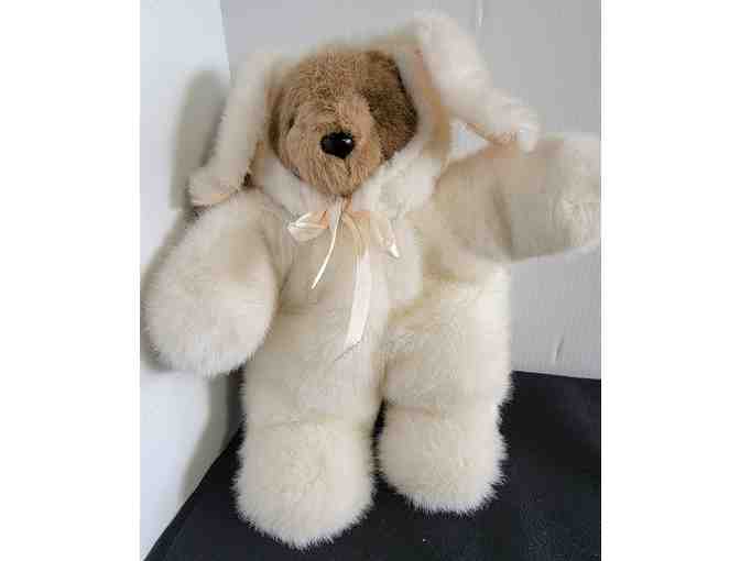 This sweet brown bear is all dressed up in a soft bunny costume—floppy ears, fuzzy paws, and all! Whether you're a collector of unique plush or just love a little whimsy, this bear is sure to hop right into your heart.