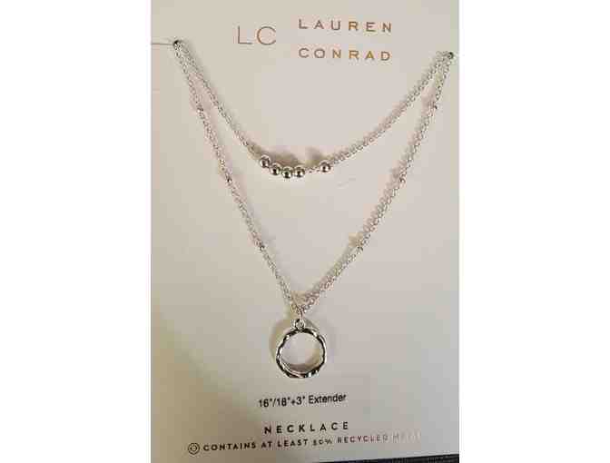 Lauren Conrad Silver Tone Beaded Two-Row Circle Pendant Necklace - New
