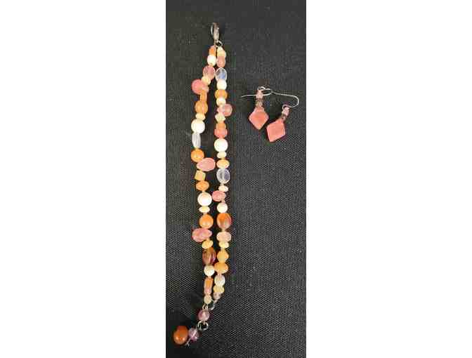 Vintage Agate Bead Bracelet 7 inches and Earrings