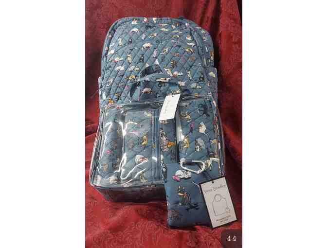 Make your trip special with this Vera Bradley Large Backpack 18"x 14", 4 pc. cosmetic organizer 12"x9"x3" and a handy foldup reusable tote all covered in cats!