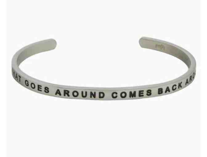 Easy to wear bracelet is designed to rev up your motivation and get your wheels turning. • Inspirational cuff • Made of stainless steel • The band is 4 mm wide, 6.25 Inches around • Open design fits most wrist sizes