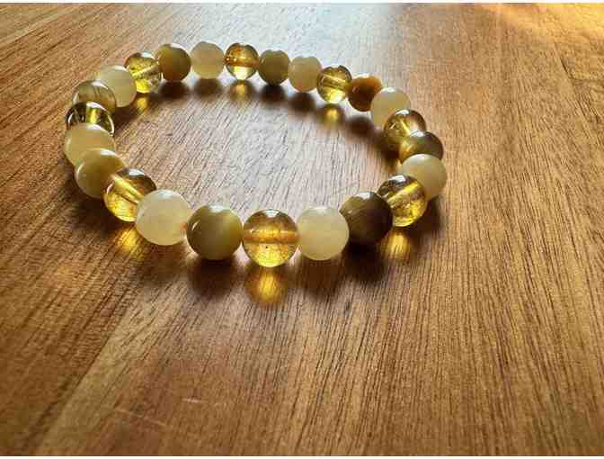 Handcrafted SOLAR PLEXUS Chakra bracelet from the beaded & woven collection, featuring Citrine, Tiger Cats Eye Yellow, Honey Calcite crystal known for attracting abundance, boosting confidence, and promoting positivity and personal power.