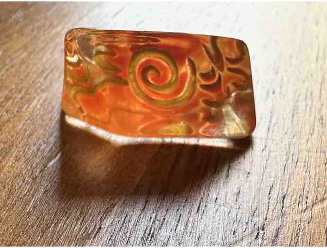This vibrant ring is a truly unique statement piece. Crafted from comfortable, clear acrylic, it features a bold, swirling design of brilliant orange and sunny yellow. The colors seem to dance together in a mesmerizing spiral, making this ring a wearable piece of modern art. It's a fun and eye-catching accessory that is sure to stand out and add a pop of color to any look.