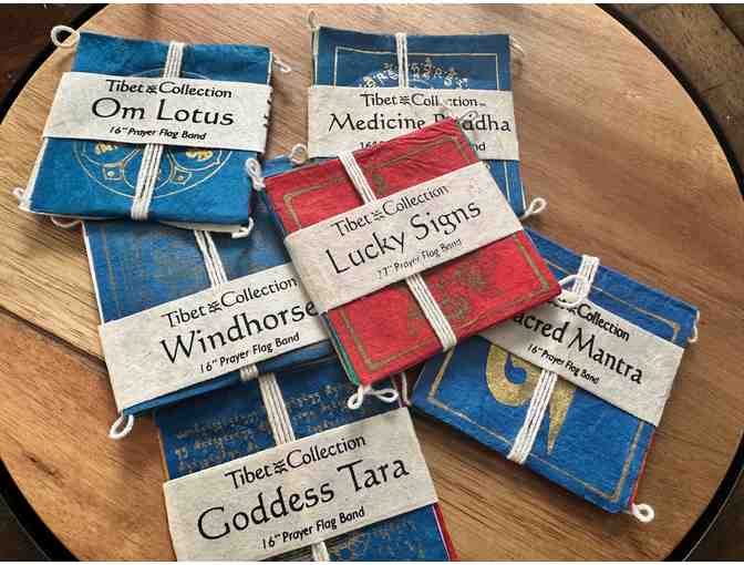 This auction features a beautiful and meaningful set of six prayer flag bands, each with a unique theme. Made from sustainably harvested lokta paper in rural Nepal, these flags are part of the Fair Trade Federation, ensuring that your purchase directly supports the artisans and farmers who create them.