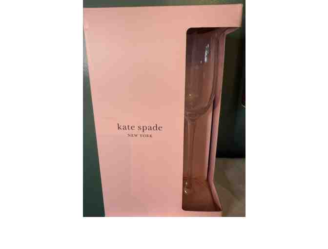 Set of four Kate Spade New York 'larabee dot' champagne flutes. In original box, unused.