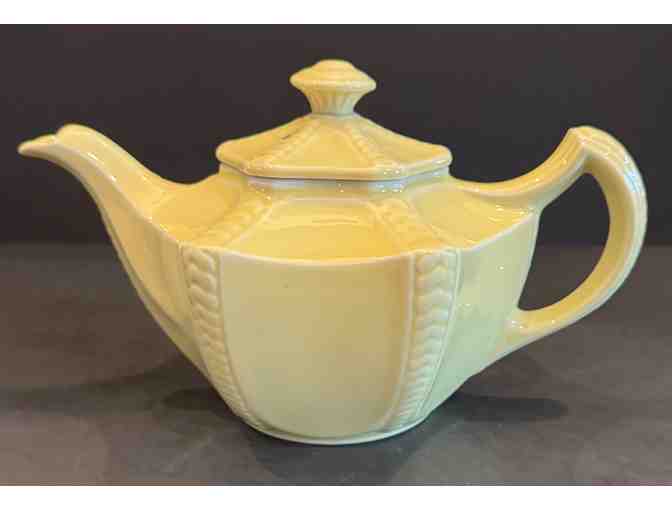 Hall China Yellow color teapot, Hexagon Shape, Victorian, 10" long x 5.5" tall
