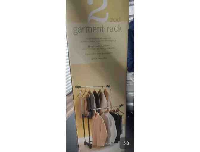 Keep your clothes wrinkle free with this Sunbeam self-cleaning iron with spray/mist feature and non-stick surface and this foldable, compact 18"x31" weighted ironing pad that lets you iron anywhere, then hang them on the Martha Stewart 2-rod, adjustable rack with casters 35"x24"x59". NO SHIPPING ON THIS ITEM