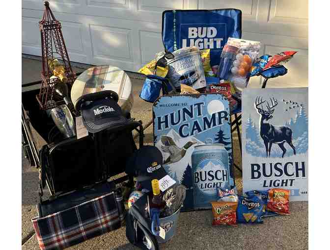 Tailgate with the BEST of everything includes beer and fine wines. Bud Lite iconic tailgate chair with foldable black wagon filled with: