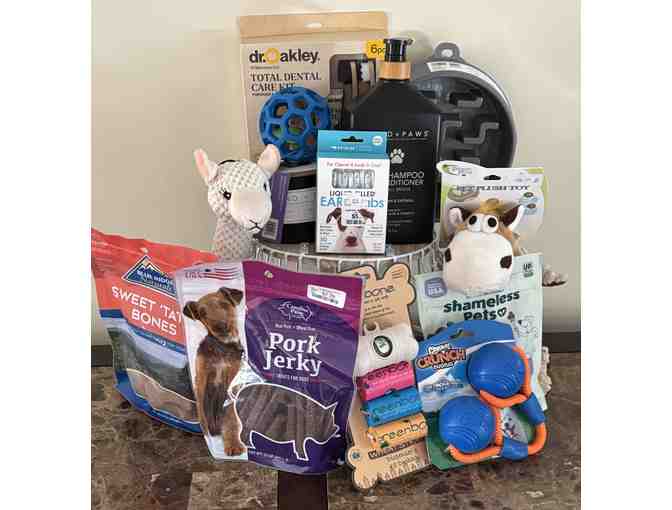 Pet includes snacks, dental kit, toys, a game, candle, shampoo, ear swabs, and grooming kit.