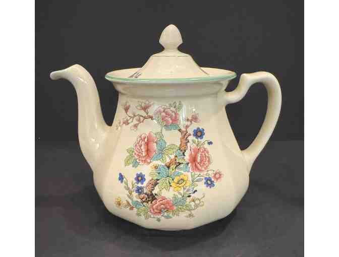 Hall 8 cup Buchanan style with floral design. Pour right tricolator coffee pot, 7-3/4" tall x 6-3/4" diameter, no defects