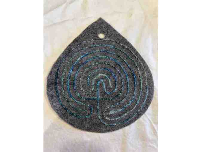 A Needle-Felted Classical Labyrinth This one-of-a-kind handmade classical labyrinth is crafted from soft alpaca fiber using the art of needle felting. Measuring 12 inches in diameter, it offers a tactile and meditative way to trace the winding path of a classical labyrinth. This piece is lovingly created by hand, making it both a functional art object and a tool for reflection, mindfulness, and centering. The natural alpaca fibers give it warmth, texture, and durability. It is hand-felted with care and intention and can be used as a handheld labyrinth for meditation or as a decorative trivet.