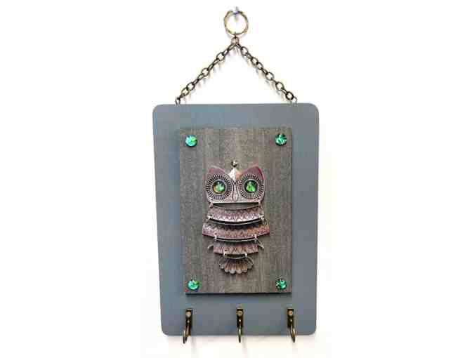 6x9 bamboo key holder hangs securely with chain and ring so that it stays centered gray finish with silver finished OWL hanging.