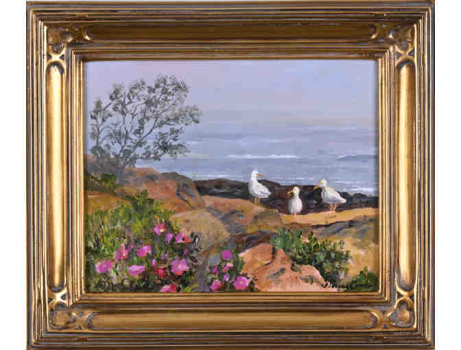 "Meeting at Bass Rocks" is an acrylic painting inspired by my many walks along the shore at Bass Rocks in Gloucester.