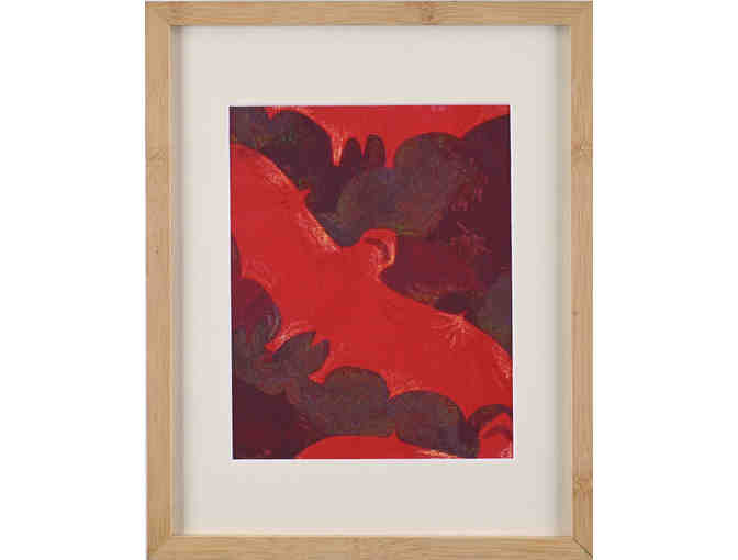 "Bats" was created using a gelli plate and represents popular fall subject matter and color combinations.
