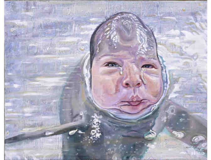 "The Porpoise of Life" was created as part of a small series of hybrid animal portraits of the artist's first daughter amidst the haze and survival period of her postpartum. As many new parents can relate, Wild aimed to capture the polarized experience of losing oneself in the exhaustion and finding oneself in a new essential role.