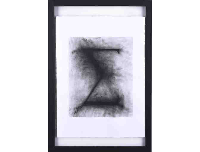 "Workflow" is part of a series of drawings by the artist which shows abstract symbols that are found in everyday life. The symbol in "Workflow" is based on a common symbol in electronic communication called MICR (Magnetic Ink Character Recognition) used in banking.
