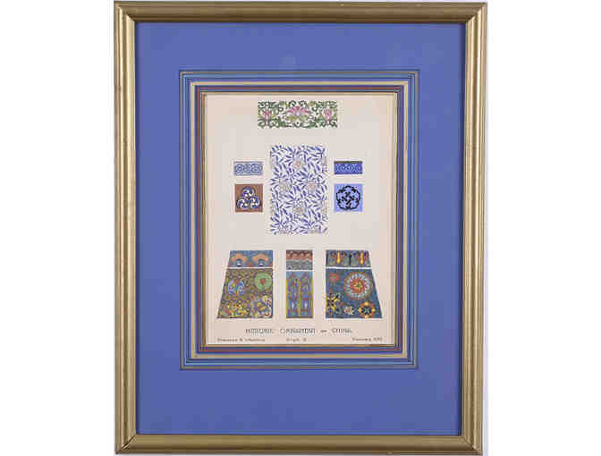 This work, "Historic Ornament or China," was created in January 1937 and was a Sophomore II Design assignment at Mass College of Art and Design. The painted detail exemplars of classic Chinese ornamental designs.