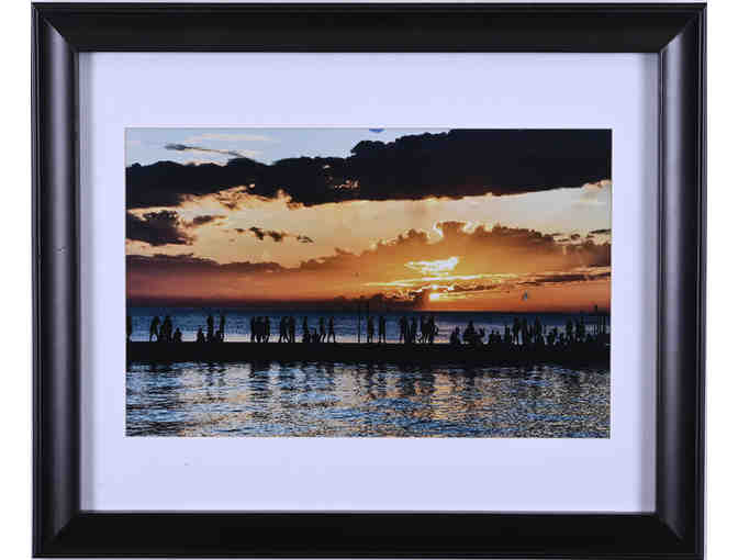 "Sunset on the Pier" is a photograph inspired by the legendary sunsets at Key West. It captures the silhouettes of sunset viewers on a Florida pier with the usual colorful backdrop.