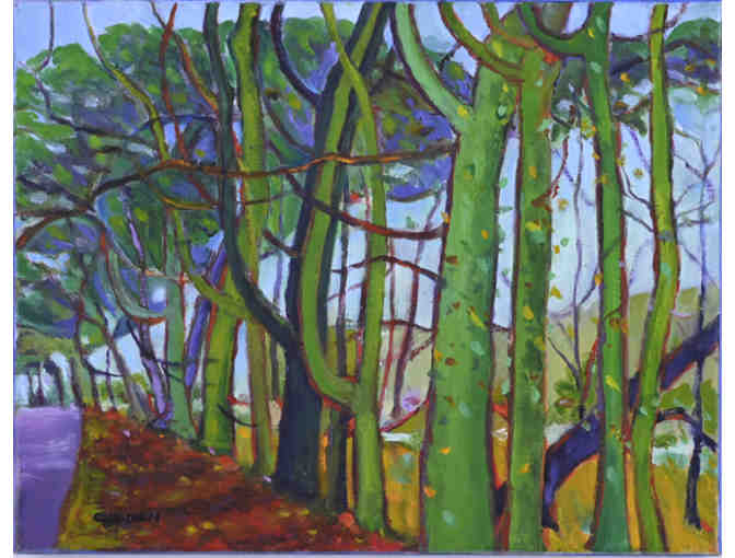 "Fall at the Vineyard" was originally sketched during one of Carol's many visits to Martha's Vineyard and later painted in her studio. It was a brilliant day in early October, and autumn was in the air on the winding roads of West Tisbury.