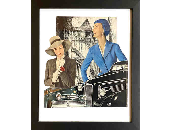 "Society Girls" captures the essence of vintage glamour and sophistication. Featuring elegantly dressed women against a backdrop of iconic architecture, the piece juxtaposes two classic automobiles. Meticulous layering of textures and colors creates a dynamic visual narrative, blending fashion and automotive history. The use of both monochrome and vibrant hues highlights the contrast between the past and present, inviting viewers to reflect on the timeless allure of style and elegance.