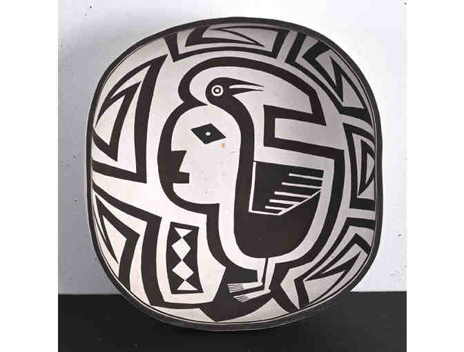 This black and white bowl depicting a bird and human figure was purchased at a Sante Fe Indian Market in the mid-1990's.