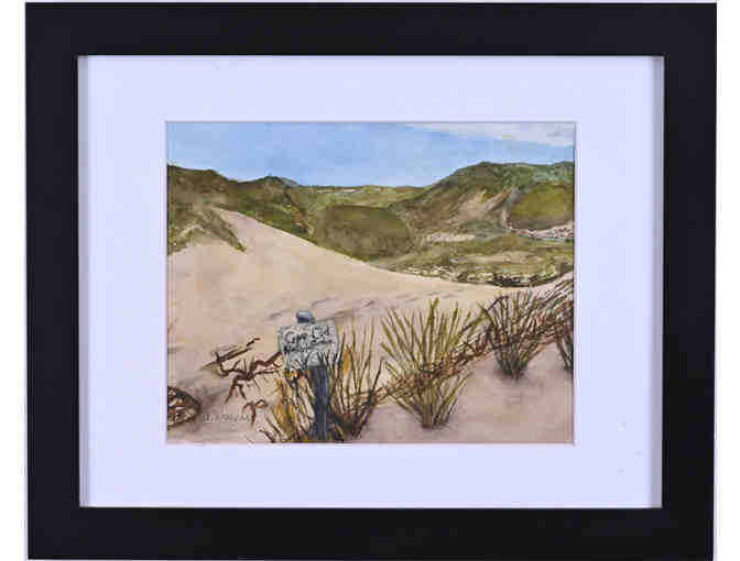 This watercolor of majestic dunes was painted from a photo taken by the artist while on a tour of the National Seashore from Provincetown.