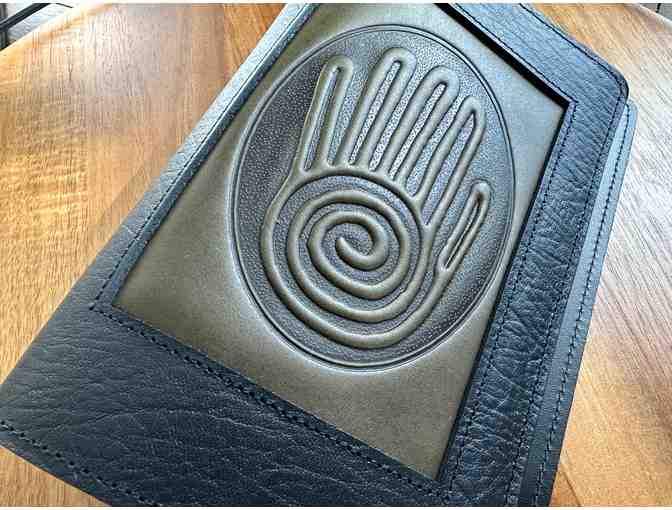 • Healing Hand Icon Patch: A distinct Healing Hand Icon is beautifully embossed onto a separate leather patch and expertly sewn into the front cover, creating a sophisticated window panel design that is both classy and meaningful.