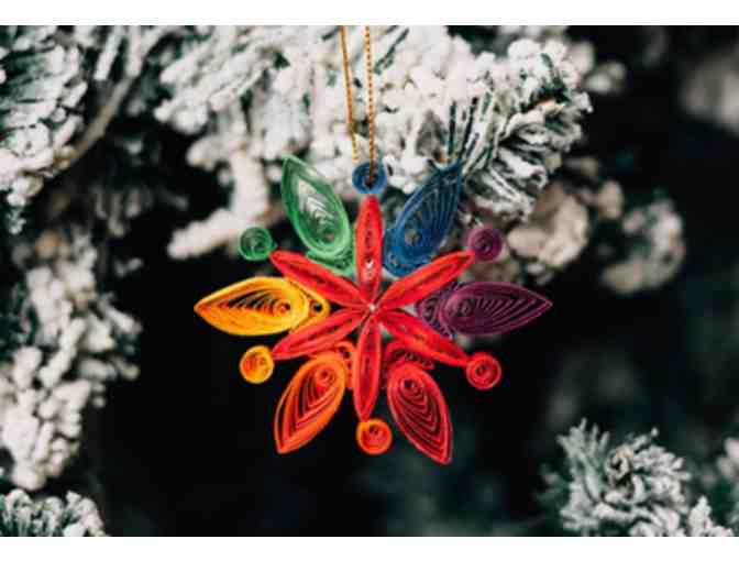 Celebrate it all this holiday season with the Rainbow Snowflake Quilled Paper Ornament. Recycled paper is carefully wound around a quill. The coils are then glued into intricate shapes like this colorful snowflake. It's an art that dates back hundreds of years. Today, these quilled paper ornaments are handcrafted by artisans working with Mai Handicrafts in Vietnam. Many of the artisans are women who are able to work in their homes using this traditional skill, earning sustainable incomes while caring for their children.