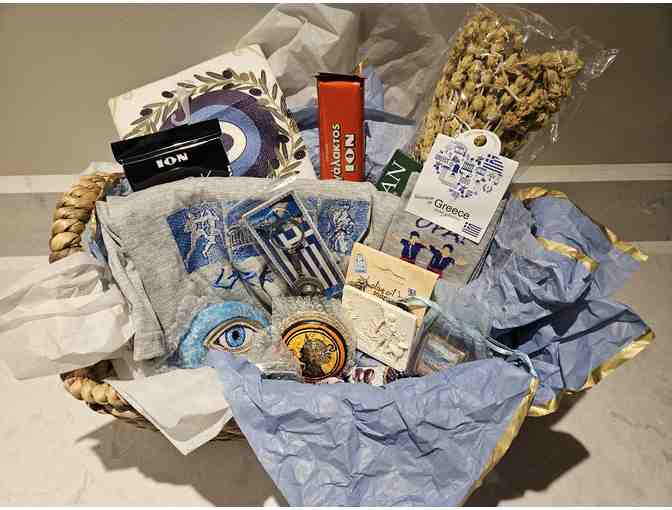 Enjoy this eclectic collection of authentic treats and souvenirs all the way from Athens, Greece. This basket includes: Greek chocolates, socks, clothing, textiles, mountain tea, magnets, keychains, soap, and handmade goodies. Opa!