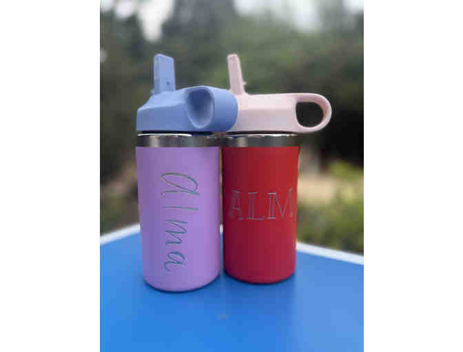 Have your child's name permanently hand-engraved on a 12oz Hydro Flask -- dishwasher safe and meant to last. Choose the bottle color, lettering style (calligraphy or block), and orientation (horizontal or vertical). Option to engrave a phone number on the bottom. Crafted by a professional calligrapher trained under five Master Penmen.