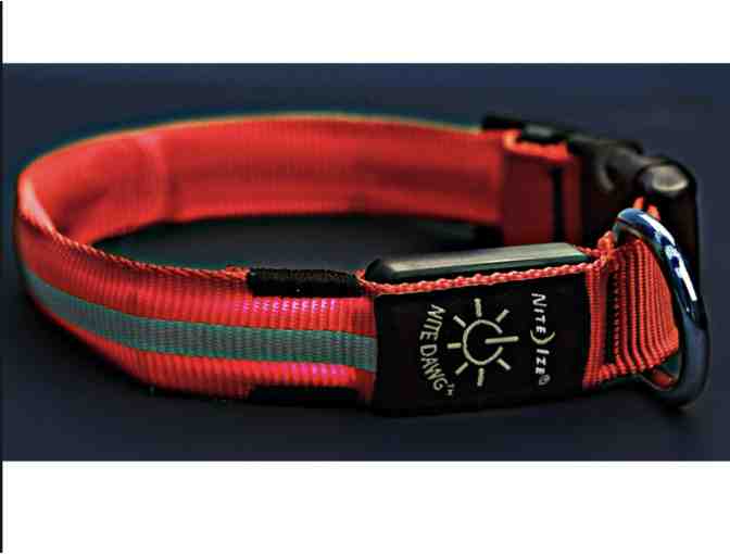 Nite Ize Nite Dawg LED dog collar keeps your pooch visible on nighttime walks. Made of durable nylon webbing, it has a bright red LED that illuminates fully around your dog's neck.