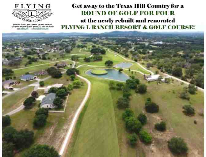A certificate for a round of golf for four at the newly renovated Flying L Ranch Resort & Golf Course in Bandera, Texas. Package includes green fees, access to practice